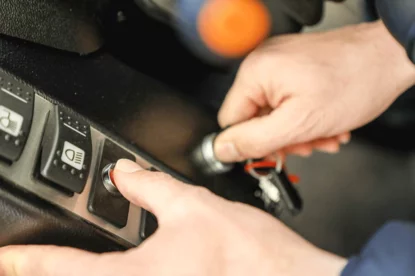 Wenn der Motor läuft, gehört zuerst die Handbremse voll durchgedrückt und anschließend wieder losgelassen.