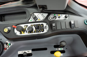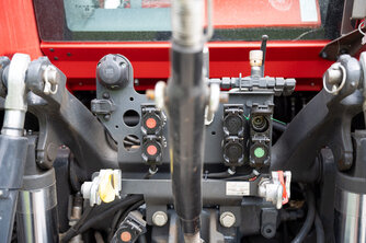 TOP-Ausstattung: TracLink-Freisichtkabine mit Klimaanlage, Signalsteckdose, Frontscheibe beheizbar, Frontzapfwelle, Fronthydraulik, 4 Leitungen nach vorne auf Anfahrschutz, 7-polige Steckdose vorne, Druckluftbremsanlage, Frontladerkonsole TOP BLOCK, 540/65-R34 Mitas AC 65 - 440/65-R24 Mitas