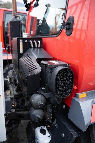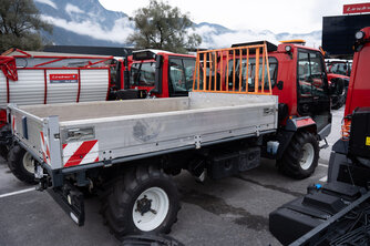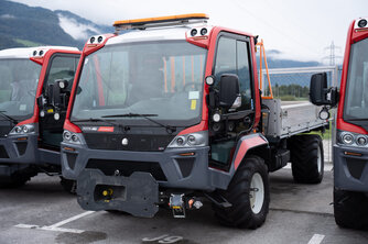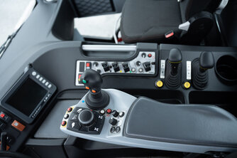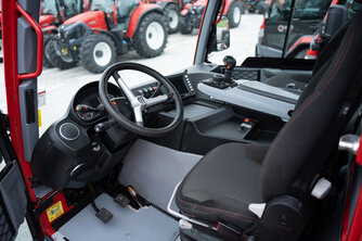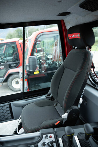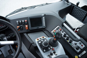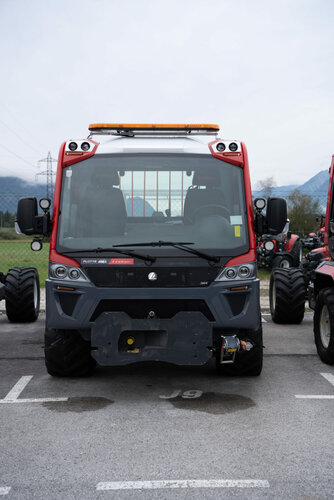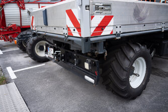 Detailausstattung: 50 km/h, 4-Radlenkung und Hinterachsverstellung, LDrive Fahrer-Beifahrersitz luftgefedert mit hohen Rückenlehnen, Lenkung höhen- und neigungsverstellbar, Klimaanlage automatik, Radio mit CD-Player, 4 ASW vorne unterhalb Seitenspiegel, 2 LED AS hinten am Dach montiert, Kommunalleuchtenträger LED, Kamerasteckdose an Anschlussplatte hinten inkl. IBC-Videoeingang, Rückfahrkamera mit Magnetfuß inkl. IBC-Videoeingang, Signalsteckdose in Konsole im Innenraum, Steckdose Stationärbetrieb auf HD-Anschlussplatte hinten, Kranvorbereitung Funk mit Gasverstellung, Wirbelstrombremse, Frontzapfwelle 1000 U/min, Steuergeräteblock LDrive 1x EWS + 5x DWS (EHS) hinten 7 Leitungen + Rücklauf vorne 4 Leitungen + Rücklauf, EFD - elektr. Frontdruckentlastung, Bereifung 425/55-R17 Mitas, Synchro-Lock vorne 4 Anschlüssen, Außentaster EHS und Zapfwelle auf HD-Anschlussplatte hinten, Anbaukonsole Euro 3, Kardanschutz vorne u. hinten, zwei Werkzeugkisten, Vorbereitung MULAG, DÜCKER oder Fiedler Böschungsmäher, Kranverschraubung, TracLink Pro mit Geräteerkennung;