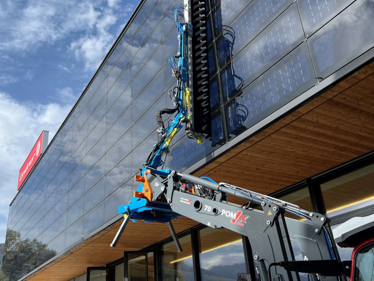 Stark in der Nische: Diese Devise untermauerte Lindner bei der Werksausstellung gemeinsam mit dem Unternehmen SunBrush, das auf die Reinigung von Solaranlagen spezialisiert ist. Seit kurzem ist ein eigener Aufsatz für den Lintrac und Unitrac erhältlich, mit dem Verschmutzungen auf Photovoltaikpanelen effizient entfernt werden können – im Solarpark ebenso wie auf Fassaden.