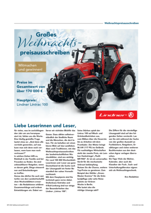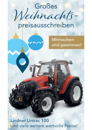 Beim diesjährigen großen Weihnachtspreisausschreiben der landwirtschaftlichen Wochenblätter warten Preise im Gesamtwert von über 170.000 €. Als Hauptgewinn winkt ein Lintrac 100 mit 4-Rad-Lenkung.