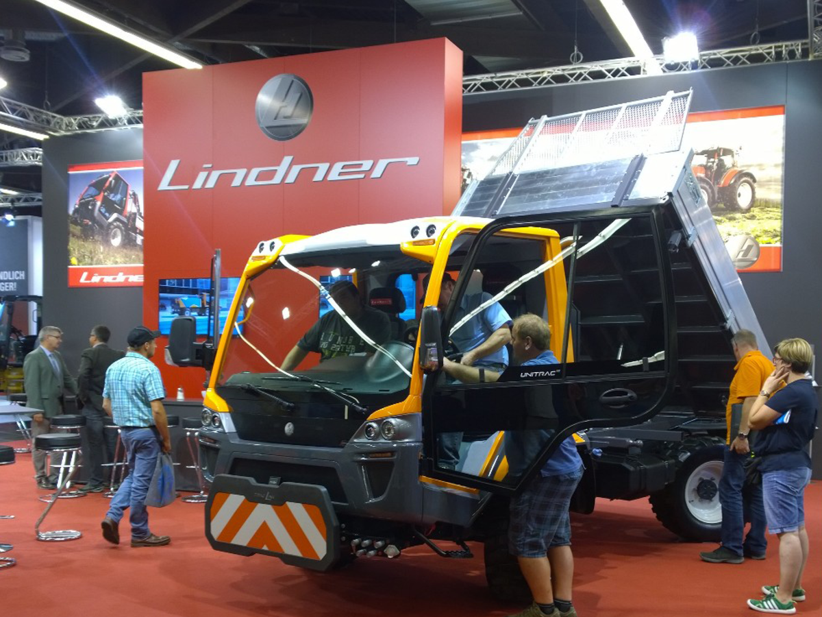 Hauptdarsteller auf dem Lindner-Stand der diesjährigen Galabau in Nürnberg war der stufenlose Unitrac 112 LDrive. Lindner hat nicht nur den wendigsten und stärksten Transporter der 70-jährigen Geschichte entwickelt, sondern auch ein besonders intelligentes und leicht zu bedienendes Fahrzeug Das leistungsverzweigte CVT-Getriebe baut Lindner mit ZF-Komponenten selber. Der Unitrac 112 LDrive fährt stufenlos bis 50 km/h, alle Einstellungen erfolgen über die aus dem Lintrac bekannte LDrive-Armlehne. Angetrieben wird der Transporter von einem drehmomentstarken 4-Zylinder-Turbodieselmotor mit 107 PS Nennleistung, der die Vorgaben von EURO 6 erfüllt. Technisches Highlight ist das neue Lindner TracLink-System, an dem die Besucher der Galabau großes Interesse zeigten. Das TracLink-System erkennt jedes Gerät, das angebaut wird und unterstützt den Fahrer, die richtige Einstellung zu finden. Außerdem können Fahrer den Beladezustand und die Achslasten überprüfen. Das elektronische Fahrtenbuch garantiert besonders wirtschaftliches Arbeiten. Per GPS wird dokumentiert, welche Geräte eingesetzt und welche Flächen konkret bearbeitet wurden. TracLink sorgt so für eine detaillierte Übersicht der Kosten- und Verbrauchsdaten. Für optimale Wendigkeit steht die 4-Rad-Lenkung des Unitrac. Die Nutzlast liegt bei mehr als 5.000 Kilogramm. Fahrkomfort und Geländegängigkeit verbindet das Hochleistungsfahrwerk mit Einzelradaufhängung und hydraulischer Federung. Wie von der Unitrac-Serie gewohnt, kann die Kabine des neuen Unitrac ohne Werkzeugeinsatz seitlich um 50 Grad gekippt werden. Erhältlich ab April 2017