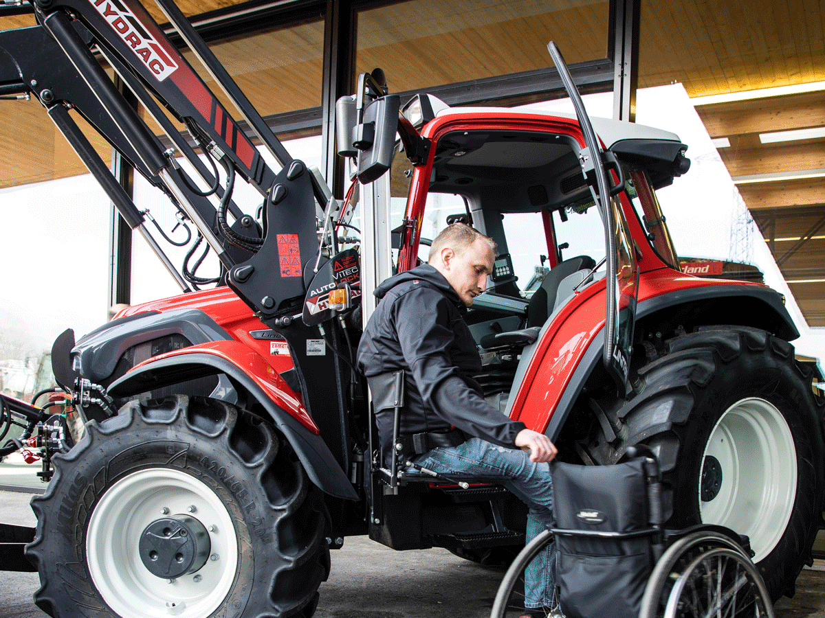 Für Fahrer im Rollstuhl oder mit körperlichen Einschränkungen hat Lindner einige Spezialumbauten umgesetzt. So wurde der Lintrac von Konrad Großlercher aus Virgen mit einer speziellen Hebetechnik in Fahrtrichtung links ausgestattet. Konrad konnte somit mit seinem Lintrac schon rund 200 Einsatzstunden arbeiten. Mehr Details zum Spezial-Lintrac erfahren Sie hier: lindner-traktoren.at/lintrac-rollstuhlfahrer