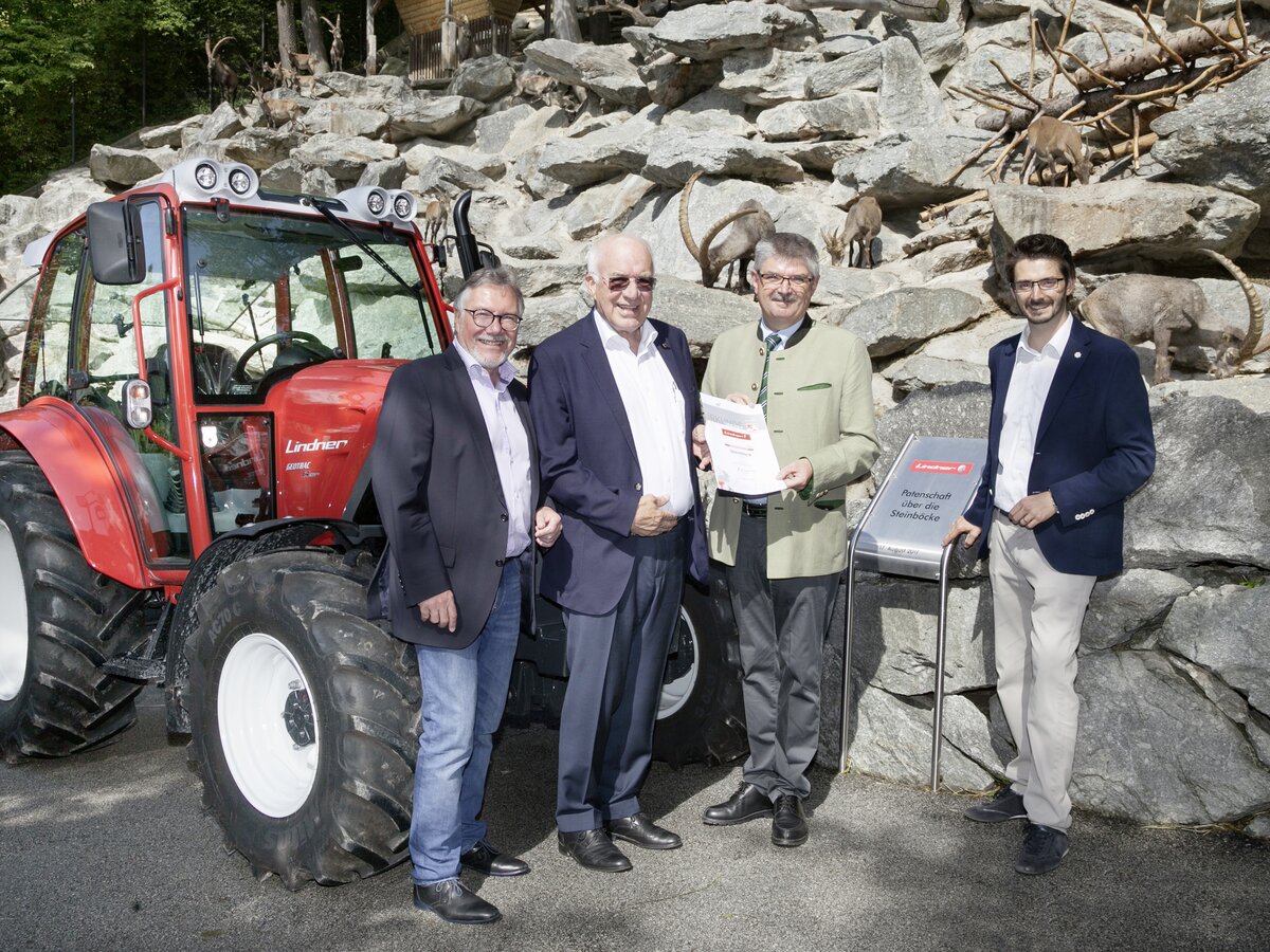 Im Alpenzoo Innsbruck gibt es ab sofort neben 2.000 Alpentieren aus 150 Arten einen neuen Traktor von Lindner zu sehen. Das Kundler Familienunternehmen übernimmt eine Patenschaft für die Steinböcke. Im Rahmen dieser Partnerschaft konnte der Alpenzoo einen neuen Geotrac 64ep günstig ankaufen. Präsentiert wurde die Kooperation von Alpenzoo-Präsident DDr. Herwig van Staa, Alpenzoo-Direktor Dr. Michael Martys, Geschäftsführer Mag. Hermann Lindner und Marketing-Leiter Mag. David Lindner. „Es freut mich außerordentlich, dass es gelungen ist, das traditionelle Tiroler Familienunternehmen Lindner als Partner des Alpenzoo für die nächsten Jahre zu gewinnen“, betont Alpenzoo-Präsident Herwig van Staa.
