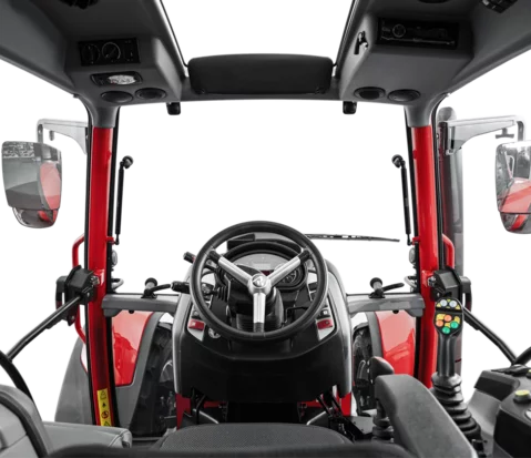 Die Panorama-Komfortkabine sorgt für optimale Übersicht nach allen Seiten. Ermüdungsfreies Arbeiten wird durch angenehmes Arbeitsklima, einen luftgefederten Komfortsitz und logisch platzierte Bedienelemente erreicht. Besonders in Gefahrensituationen ist es wichtig, Schalter und Hebel schnell zu finden um richtig zu reagieren. Deshalb sind alle Bedienelemente übersichtlich gegliedert. Das Zentralinfoboard mit I.B.C.-Display dient als zentrale Anzeige.