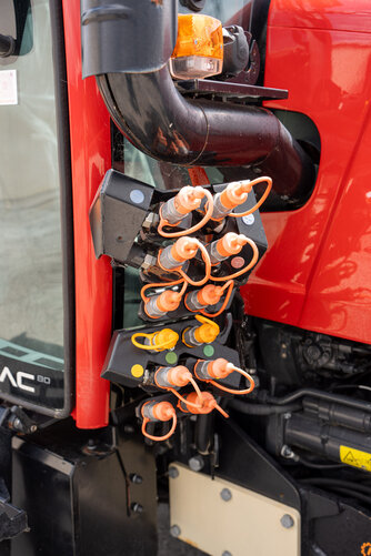 Detailausstattung: LINDNER LINTRAC 80, Weinbaufahrzeug, Traclink Pilot Ready mit Frontladerassistent inkl. TracLink Basic, Allradabtrieb Z58, Gummikotflügel vorne anstatt Lintrac Design Kotflügel, Kotflügelhalter vorne: 5 1930 02 390 / 395 (170x190mm), Kotflügel vorne: 5 1500 02 144 / 145, Plantagenkotflügel hinten (Außenbreite 1600mm bis 1830mm), TMT09 Stufenlosgetriebe, Powershuttle, Ldrive, LINDNER-Hinterachslenkung, Hinterradlenkung +/- Verstellung auf Armlehne, PLANTAGENACHSE 35/15 mit Sperre (HPL-1630 6-L/Ø205) LINTRAC HAL, Komfort-Freisichtkabine mit Klimaanlage, Innenverkleidung erweitert mit Lederlenkrad und Rombus-Steppung auf Armlehne & Beifahrersitz, Innenraumleuchte auf Konsole rechts, Komfortsitz luftgefedert (inkl.Horizontalf.), LDrive-Armlehne rechts Serie, Verzögerungstaste auf Armlehne (Motorbremse) , Komfort-Plattform mit 2 Ebenen (gefedert, Frontscheibe öffenbar), Kabinenfederung mechanisch, Seitenspiegel Ausf. Weinbau, Heckscheibenwischer und Waschanlage, Radio kompakt mit DAB+, USB, Bluetooth, Innenspiegel, Videoeingang für Lindner I.B.C.-Monitor (für Kameraschnittstelle), Management-Funktion für Allrad und Zapfwelle, TracLink Mobil (Smartphone-Verbindung über OBD-Stecker mit Bluetooth), Signalsteckdose (für wegabhängige Anbaugeräte), 3-polige Steckdose Kabine-Innenraum (25A), ISO-Bus Steckdose, 2 LED Arbeitsscheinwerfer vorne oben Ausf. Weinbau, 2 LED Arbeitsscheinwerfer hinten in Dachschale, 2 LED Arbeitsscheinwerfer hinten oben zusätzlich, zusätzliche LED Blink-Bremslichter am Dach hinten oben, LED - Rundumleuchte links höhenverstellbar, Ausf. Weinbau Unterlenker mit WAS Schnellkuppler Kat.2, ohne Ackerschiene hinten, EHR Oberlenker hydraulisch mit Schnellkuppler, Anhängeschlitten Automatik Ausf. 50mm erhöht, Lindner Frontzapfwelle elektro-hydraulisch und Fronthydraulik verstärkt, 2.500kp, Hubarme mit Schnellkuppler KAT2, Hub & Druckeinrichtung zu FH (doppeltwirkende FH), 4-Radbremse, DL-Bremsanlage 2 Leiter inkl. Frostschutz (EU-DL Anschluss) & hydr. 1 Leiter ABV, Halterung für Steuergerät RECHTS, große Verstellpumpe 100l/min. Maximalleistung (180bar), 5x EHS dws Steuergeräte, Multicontroller-Joystick Umschaltung PRO (konfigurierbar, EHS Tastbedienung) über Drehrad, Multicontroller-Joystick (15 Taster) Ausf. Weinbau, EHS - Mengenverstellung über Potentiometer, Außentaster vorne für EHS Steuergerät, Außentaster am Rücklichtgehäuse für EHS, 8 Kipperleitungen + 1 Rücklauf (inkl. Staubschutz), Leckölsammelbehälter, Hauer Seitenanbauplatte, Anfahrschutz vorne inkl. Mähwerk-Entlastungsfederösen, Batteriehauptschalter elektrisch, Anschlüsse Ausf. Faster "Ausf. Stecker-flachdichtend" vor der Kabine rechts / Rücklauf "Ausf. Muffe", OHNE Ölkühler (elektrisch hinten), EW-Mengenteiler mit Bedienung auf Joystick, hydraulische Seitenstrebe hinten links über EW-Mengenteiler, CLEAN - FIX, Werkzeugkiste außen (seitlich vor der Kabine), Lindner Verbands - Set (inkl. Warndreieck und Warnweste)