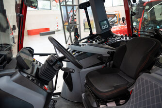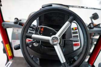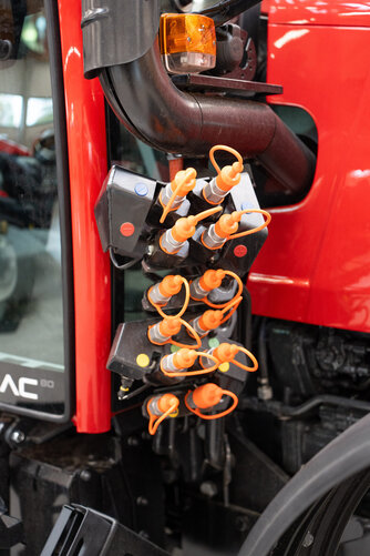 5 Steuergeräte, Druckluftbremse, hydraulisches Anhängerbremsventil, elektronische Hubwerksregelung, 4-Rad-Lenkung, Hub & Druckeinrichtung, ISO-Bus Steckdose, Kabinenfederung, Klimaanlage, Frontzapfwelle, Fronthydraulik