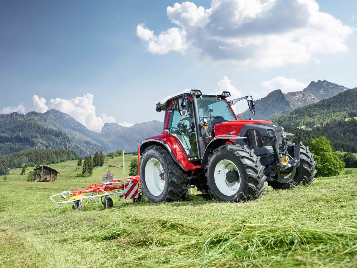 Un autre point fort est le Lintrac 100 : le polyvalent en continu montre ses atouts lors de la tonte, de la fenaison ou avec le chargeur frontal. Le moteur Perkins Syncro répond au niveau 5 de propreté et d'économie. Il délivre 86 kW (117 ch) en tout-terrain. Le couple est de 500 Nm à 1 500 tr/min. L'augmentation très abrupte du couple est supérieure à 40 %. La prise de force à 4 vitesses avec commande de démarrage fonctionne à 430 / 540 / 750 ou 1 000 tr/min. La direction à 4 roues promet de la maniabilité. En pratique, le nouveau Lintrac 100 atteint un diamètre de braquage de 7,8 mètres.